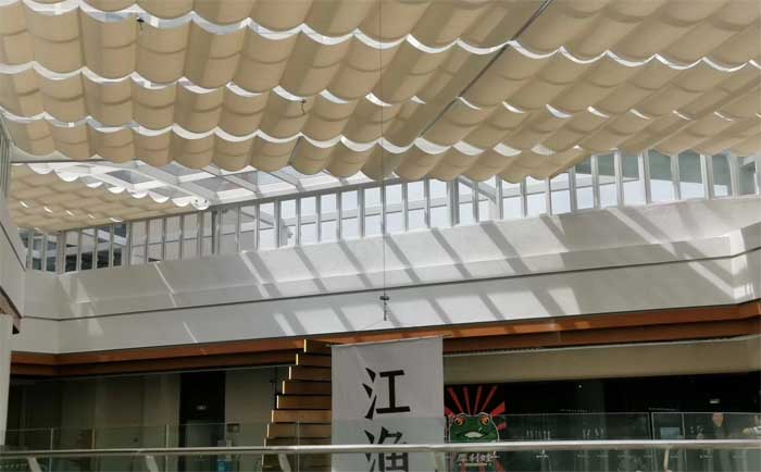 佛山順德大良濤匯廣場采光頂電動遮陽棚 天棚簾實拍 工廠占地3000㎡,集設計、生產(chǎn)、銷售,安裝等于一體的窗簾公司